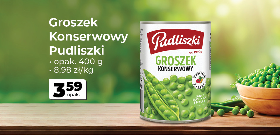 Teraz w sklepach Odido super promocja -Groszek konserwowy Pudliszki w cenie 3,59 zł